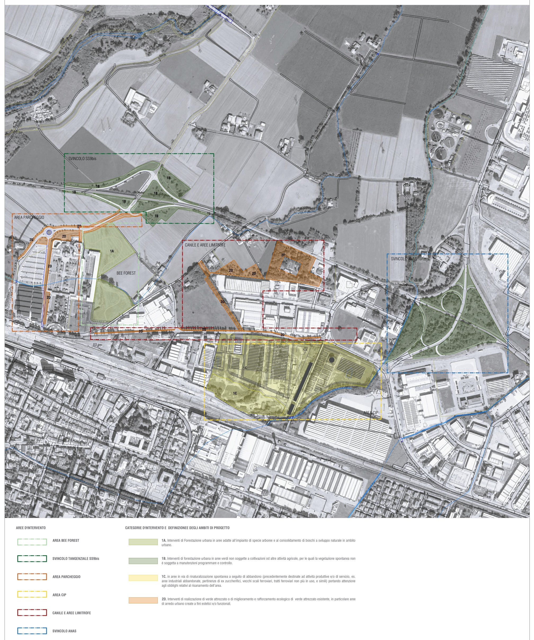 L’obiettivo del progetto è di ricomporre e potenziare le connessioni ecologiche creandone di nuove, oltre a restituire alla comunità fidentina nuovi spazi da tempo non accessibili, l’area Cip e Carbochimica, che formano il Sito di interesse nazionale (Sin) di Fidenza, due ex stabilimenti dall’impatto ambientale significativo, entrambi a circa 500 metri dal Duomo e oggi oggetto di bonifica. Il progetto Rete si propone di mettere a sistema l’area Cip e Carbochimica, con la preazione di una grande duna che ospiterà un sistema arboreo-arbustivo, con la zona ad est e ovest del cimitero comunale e i due svincoli della tangenziale SS9bis. Altro intervento è quello rappresentato dalla Bee Forest, area in cui si creerà una nuova zona vegetale per attirare e consolidare la presenza di insetti impollinatori mediante la creazione di un prato erboso, di una fascia arbustiva e un piccolo lago posto nella parte Sud Est. In alcune aree gli interventi si concentreranno nell’aumento della vegetazione arborea ed arbustiva, in particolare nelle aree dei due svincoli della tangenziale SS9bis.