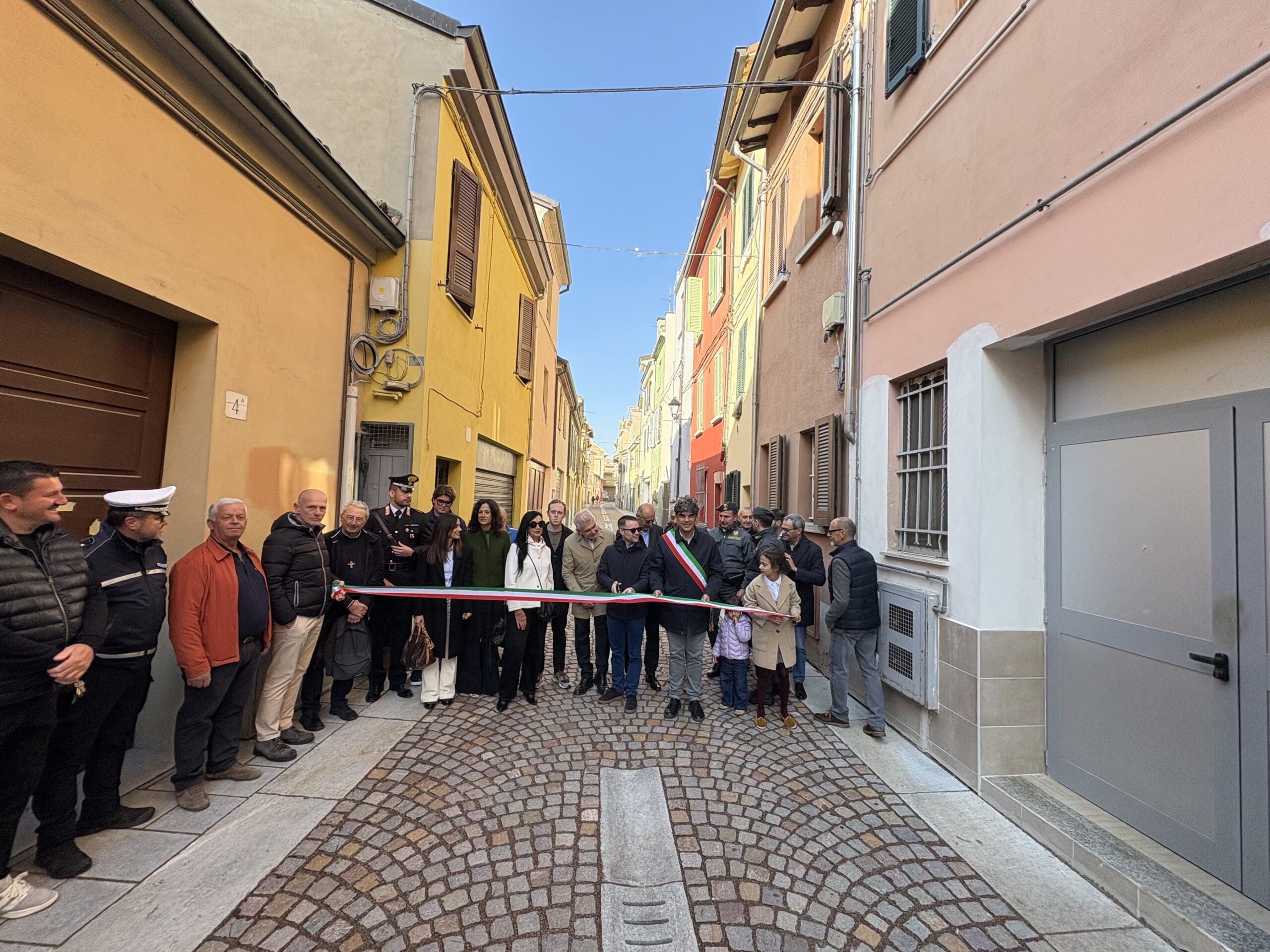 La nuova veste pubblica dei vicoli Ghiozzi e Ronchei è stata presentata sabato mattina dall’Amministrazione comunale in un momento inaugurale che ha coinvolto la cittadinanza. Il taglio del nastro, avvenuto alla presenza del vescovo di Fidenza Ovidio Vezzoli, dei progettisti e dei rappresentanti delle ditte esecutrici dei lavori, segna la conclusione del primo stralcio del più complessivo piano di rigenerazione urbana dell’area compresa tra la chiesa di San Michele Arcangelo, il Collegio dei Gesuiti, via Berenini e via Boccaccio.