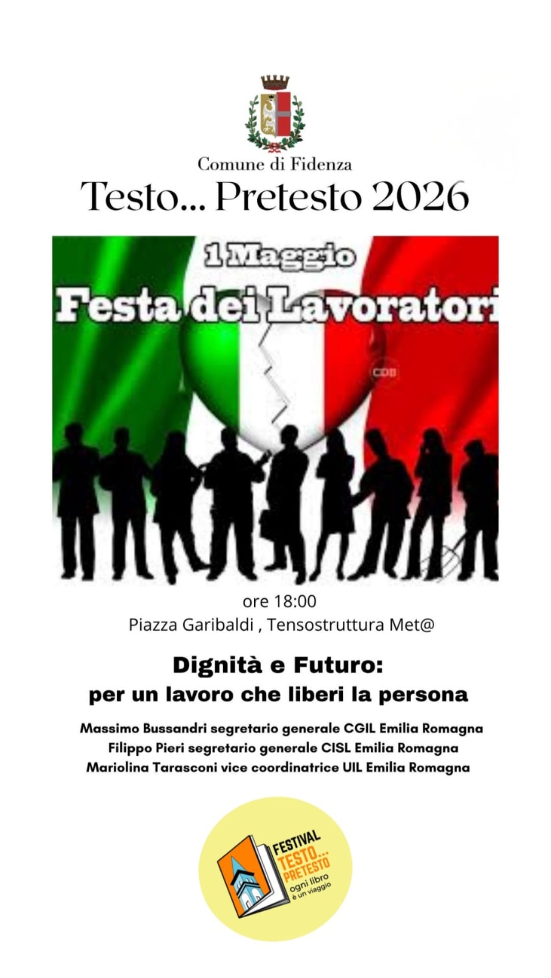 Venerdì 1 Maggio, Festa dei Lavoratori, a Fidenza è in programma un dibattito dal titolo “Dignità e futuro. Per un lavoro che liberi la persona”.